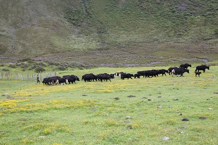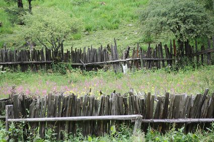 隨著海拔高度的升高與緯度的增加,一路上的植被類型也在不斷發(fā)生著變化。穿越深闊的暗針葉林,六匹馬起起落落的腳力踩出了一個(gè)馬幫的回音,所有的植物在各自的生命活動(dòng)中散發(fā)出了清新怡人的芬多精,吉美為此小聲哼唱起了愉悅的歌兒,細(xì)聽卻又像是兩只云雀在不遠(yuǎn)處鳴囀。再往上走,周遭的林木又轉(zhuǎn)換成了密致的高山杜鵑林,無(wú)數(shù)修長(zhǎng)的木流蘇垂掛在樹枝上,像哈達(dá)。一路沉默的南杰轉(zhuǎn)頭來(lái)開始與我說(shuō)話“六月間,這里的每一棵樹都開滿了粉白的花朵,一樹樹的煞是壯觀好看,我一個(gè)人經(jīng)過(guò),總能聽到一朵、兩朵花鈍落的聲音。最初,我以為是馬雞飛落了,輕聲走入林中打探,身后又會(huì)落下一朵、兩朵花,那聲音厚重沉實(shí),林中又過(guò)于安靜,我就慌忙走出了林子......”南杰說(shuō)話聲音秀氣,我聽得時(shí)斷時(shí)續(xù),過(guò)風(fēng)吹送著南杰話語(yǔ)中杜鵑花的香氣。前路逐漸敞亮起來(lái)的時(shí)候,路邊的杜鵑樹開始變得稀稀落落了,只見路旁堆壘著高高低低的新鮮柴垛。再往上就沒(méi)有樹木了,只有矮腳盤香和淺草,路邊的山包上緊貼著密密麻麻的貌似多肉植物的草葉,從草心抽出來(lái)一枝枝薔薇紅的花柱在風(fēng)中頻頻點(diǎn)頭。雍貝在前方的馬匹上頭低得越來(lái)越沉,以為他瞌睡,我喊了聲貝,他回頭看我,面色灰白嘴唇有些發(fā)紫。南杰回望我們后一躍下馬,從路邊的淺草中折斷幾根盤香枝別在雍貝的耳際,說(shuō)是可以抵御高反。剩余的兩根遞給我,細(xì)小的枝葉上積著一層薄薄地灰色粉塵,深嗅有松脂的清香氣味,安人心神。