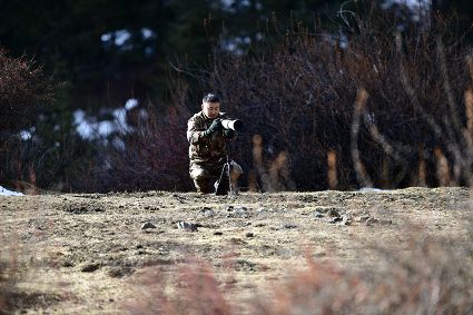 4月16日,筆者在康定市雅拉鄉(xiāng)境內(nèi),再次拍攝到國家二級保護動物白腹錦雞求偶的清晰視頻。一只色彩斑斕的雄鳥,拖著黑白相間的云狀斑紋尾羽,圍著雌鳥跳起了“圓舞曲”。整個求偶過程有十多分鐘。每年三至五月是白腹錦雞求偶期。
