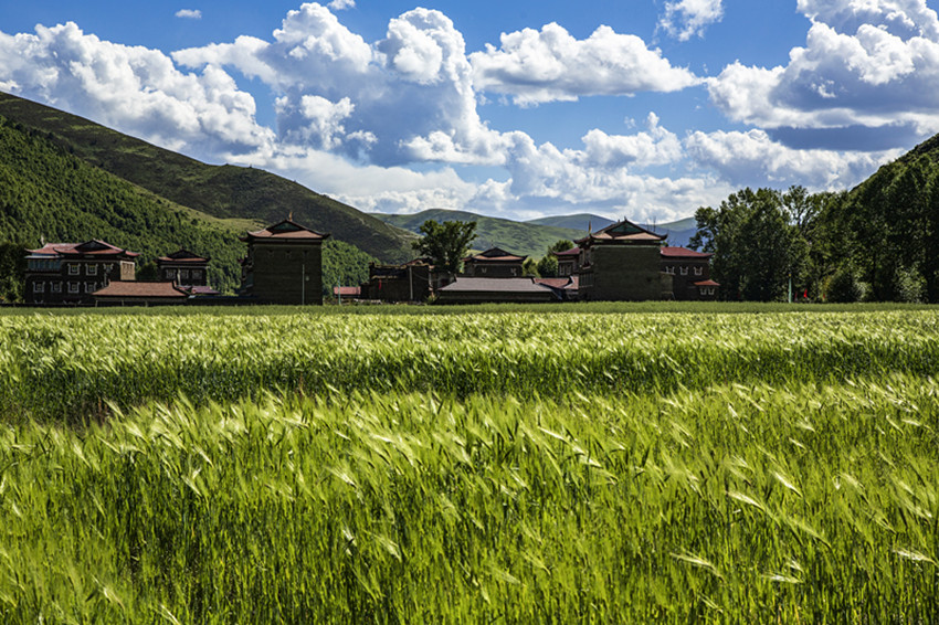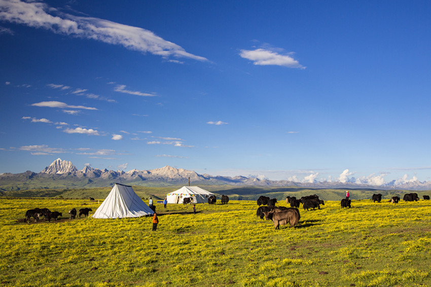 然后行走在山水之間,擁抱大自然,尋找屬于自己的“詩和遠(yuǎn)方”。油綠的青稞、小麥,散發(fā)出濃郁的田園風(fēng)味;天邊群山起伏,磅礴的氣勢瞬間感覺人在自然面前實(shí)在太渺??;帳篷點(diǎn)綴著開滿野花的牧場,牦牛哞鳴,一片生機(jī),細(xì)細(xì)體會牧民“逐水草而居”的生存智慧......