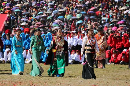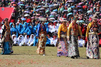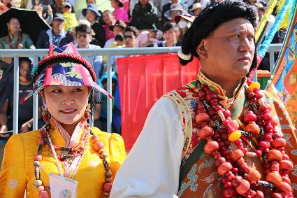 于是,年復(fù)一年,“漢子”與“花”兒們便挺拔、綻放在漢語表達的一個極點之上,被玄想,被渴望。對遠道而來的人們或是世代居于高原的子民而言,康巴漢子與康巴之花不僅僅是美的化身,通過康巴漢子與康巴之花的評比,人們在尋找一個早已失落卻又天然渾成的世界。