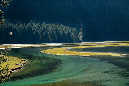 因?yàn)榭刀ǖ奶鞖?,就算?dāng)?shù)厝艘沧聊ゲ煌福袝r(shí)天空正暖陽(yáng)高照,忽的便下起小雨;有時(shí)陰云密布,但轉(zhuǎn)眼便是風(fēng)和日麗;霧總是那樣飄忽不定,時(shí)常在山間聚散游走;風(fēng)永遠(yuǎn)是那么剛?cè)岵?jì),經(jīng)常在河邊回旋嬉戲……陰晴冷暖,風(fēng)雨霧雪,在這里,天氣的變化是那么隨意自由,多少有點(diǎn)肆無(wú)忌憚,總之一切的一切都是謎,這一刻的你決然猜不出下一刻的天氣。