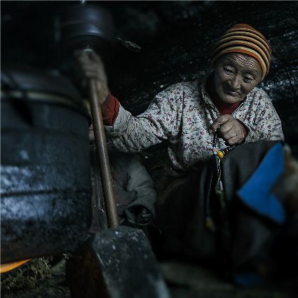 每當我手持相機時,對他們始終懷有一種敬畏,我捕捉到他們眼神里流露出虔誠??粗?jīng)筒上“甲多”的飛轉(zhuǎn),我陶醉了,醉在那轉(zhuǎn)經(jīng)筒的旋轉(zhuǎn)舞動,醉在那轉(zhuǎn)經(jīng)筒傳誦的故事,醉在那一張張手持轉(zhuǎn)經(jīng)筒的面孔,還有,還有因祈禱音符助推而從未停止的轉(zhuǎn)經(jīng)筒……