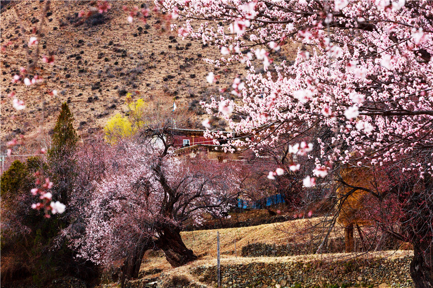 江南之地沒(méi)有雪山,繁華之地沒(méi)有田園,或許只有在得榮,才能盡享桃花掩映下的雪山之景,領(lǐng)略到高原上用腳步可以丈量的桃花源。
