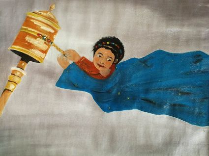 畫(huà)畫(huà)三年多了。十三歲寫(xiě)詩(shī);到了高原后,方開(kāi)始創(chuàng)作長(zhǎng)篇小說(shuō)。在上海,我做過(guò)畫(huà)廊。但要說(shuō)斗膽動(dòng)筆畫(huà)幅肖像。我是在白度母唐卡前燃了三炷香的。包括在咖啡店現(xiàn)場(chǎng)作畫(huà)。到京城繼而國(guó)外辦畫(huà)展,我認(rèn)為都是因了我把畫(huà)布當(dāng)成了詩(shī)稿的緣故。于是,大家喜歡我這種野路子,天馬行空,可又不舍方圓的創(chuàng)作手法。接下來(lái),歐洲、東京還會(huì)有我的系列展覽。