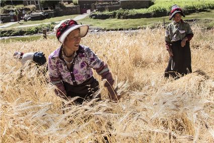 八月起迄,當(dāng)你翻越西出爐關(guān)第一隘口的折多山,下山十里就會(huì)看到山地田野里成熟的青稞、麥子象展開(kāi)一頁(yè)頁(yè)金黃的詩(shī)篇涌進(jìn)眼里。那大地山坡起伏驛動(dòng)的金箔等待著走進(jìn)主人的碉樓……這個(gè)時(shí)候,正是秋收的開(kāi)始。