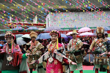 十月的丹巴沐浴著深秋溫暖的陽光,漫山遍野的紅葉彩林喜迎八方賓朋。10月26日,2019中國四川丹巴嘉絨鄉(xiāng)村風情節(jié)在巴旺鄉(xiāng)精彩上演。歡樂的舞步,五彩的哈達,飛揚的歌聲,吟唱難忘的歲月,縱情謳歌新時代,《婚禮鍋莊》、《潔白的哈達》、《紅軍不怕遠征難》、《祖國,用青春的名義為你歌唱》以及原生態(tài)山歌,一支支激越的舞蹈,一首首嘹亮的贊歌,不僅飽含了嘉絨兒女對祖國的美好祝福,更承載著嘉絨兒女對黨的真摯情感。