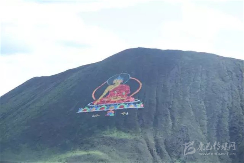 看,佛主正在向我們微笑,這尊巨大的佛像是由然梯寺的活佛使用4萬根經(jīng)幡,在沒有使用任何輔助工具的情況下花費(fèi)一個月的時間創(chuàng)作而成。每當(dāng)風(fēng)吹過,大佛就會隨風(fēng)飄舞。就如同在向四面八方散發(fā)佛光一樣。