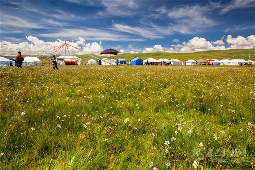 宗塔草原,宗塔草原是康區(qū)最美麗富饒的牧場,寬闊的草原上牛羊成群,帳篷頂頂,著名的康區(qū)狐獅神山滿載著歷史的印跡靜臥于草原中心,仿佛沉浸在無盡的朝拜中。每到夏季,百花爭艷斗奇,草原上先后開出黃、白、粉紅、藍(lán)、淡黃等不同顏色的野花,奇跡般地為草原定時換上盛裝,叫人疑為人間仙境,她真的不愧是獨(dú)具特色、名副其實(shí)的七彩草原。