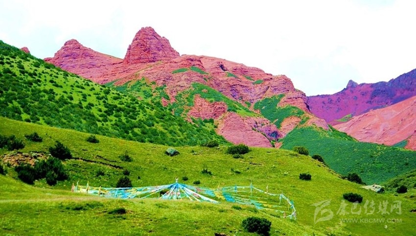 站在絨多巴日神山前眺望,自我的微渺正如一粒小小的礫石。旭日東升,霞光萬丈,新龍丹霞彷佛就是天邊的紅云,每一座山峰都在講述著一個夢幻般的故事,每一片草地都在吟唱著一首天籟般的民謠,此時,仿佛身處神話的國度。
