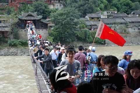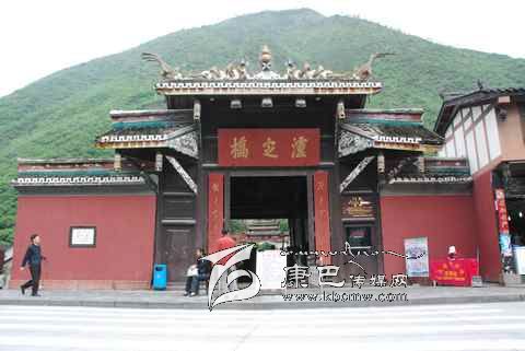 瀘定橋始建于清康熙44年 (1705年),次年五月竣工,康熙御筆題名“瀘定橋”。橋身共由13根鐵鏈組成,其中底鏈九根,扶手四根。橋東西兩端各有橋臺一座,西端觀音閣下有康熙題寫之《瀘定橋》石碑,橋東有《御制瀘定橋碑記》,瀘定橋是大渡河上第一座穩(wěn)固的大鐵索橋。1935年中國工農(nóng)紅軍晝夜行軍240里,英勇飛奪瀘定橋,打開了北上抗日的通道,“十三根鐵鏈托起了一個共和國”,毛澤東同志為此寫下了“大渡橋橫鐵索寒”的壯麗詩句,瀘定橋自此名揚四海,成為中國紅色第一橋。為紀念紅軍飛奪瀘定橋這一壯舉和奇跡,于1985年在沙壩建立了“紅軍飛奪瀘定橋紀念館”和紀念碑。紅軍飛奪瀘定橋紀念碑由鄧小平同志題寫碑名,聶榮臻元帥題寫碑文。紅軍飛奪瀘定橋紀念館收集了紅軍飛奪瀘定橋時用過的門板、槍、炮、紅軍的旗幟、文件箱、信件證明、標語、戰(zhàn)報、手雷、馬刀等珍貴文物110余件以及177幅歷史照片。瀘定橋是全國首批重點文物保護單位,是國家重點培育的 “紅色旅游區(qū)”、重點組織規(guī)劃的 “紅色旅游精品線路”和重點建設的 “紅色旅游經(jīng)典景區(qū)”。