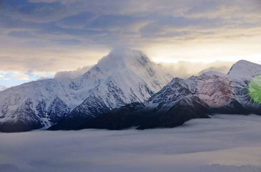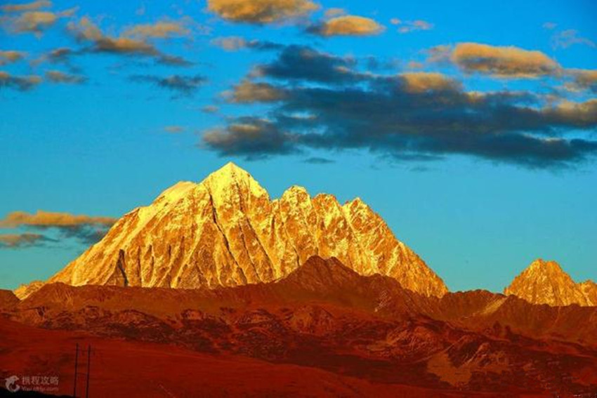 貢嘎山位于康定城南約55千米處,“貢嘎”為藏語“雪白”之意。貢嘎山險(xiǎn)峻挺拔,峰項(xiàng)有70平方米的平臺(tái),終年積雪覆蓋,晴空萬里時(shí),閃耀著熠熠光芒,瑰麗壯觀。