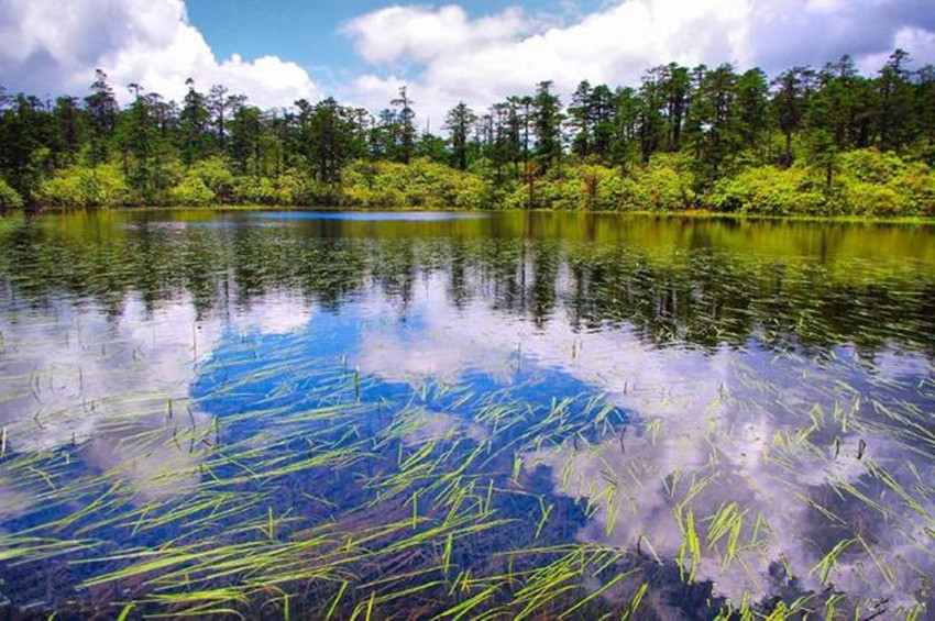 繼續(xù)前行,下一站既是木格措。木格措漢名:野人海,水源來自于身后女媧雪山的積雪融水,水質(zhì)清冽,能見度極高,湖四周群山環(huán)抱,紅海、黑海、白海等幾十個(gè)小海子圍繞在周圍,如眾星拱月般。木格措風(fēng)光秀美,“臥虎觀月”、“雙霧墜?!钡染坝^最為獨(dú)特。