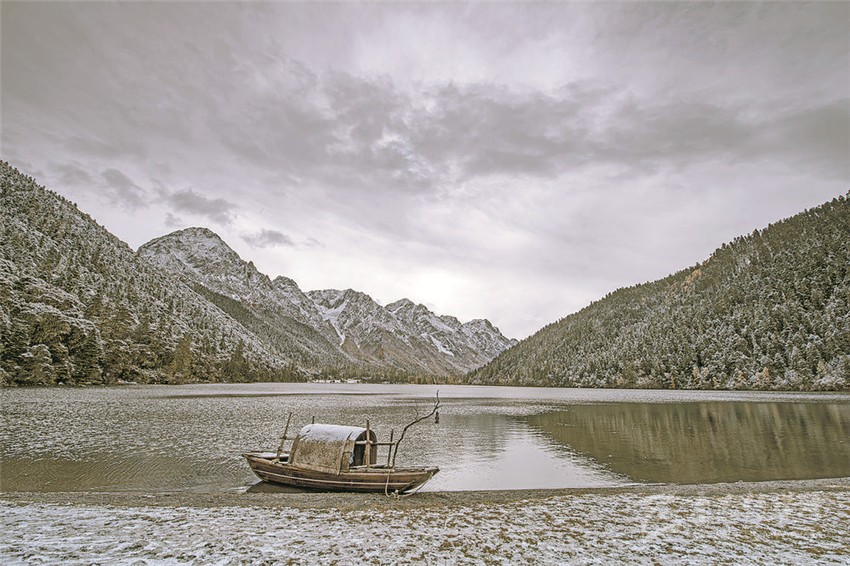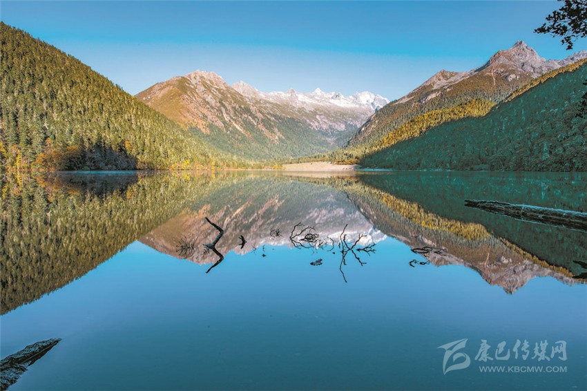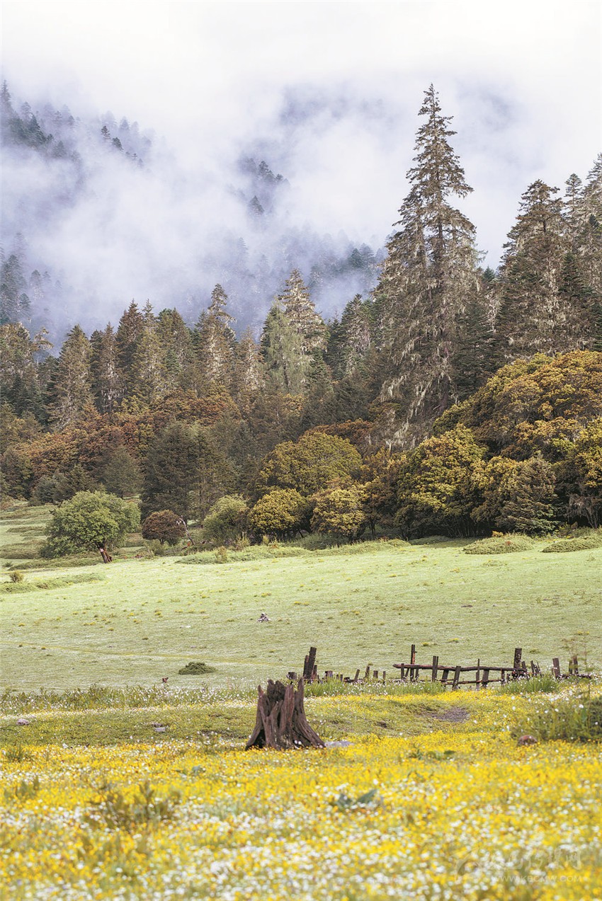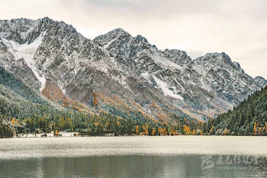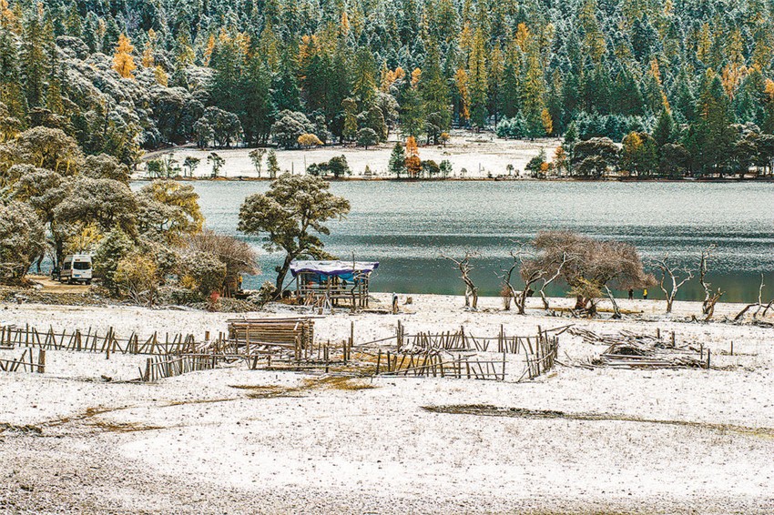 伍須海的色彩,四季都會(huì)變化,秋天最為精彩,滿湖的深綠,青黛的暗針葉林,金黃色的紅杉,火紅的槭樹(shù),褐色的高山櫟,以及點(diǎn)綴于其間的沙棘果實(shí),都五彩繽紛地點(diǎn)染著這張“畫(huà)布”。