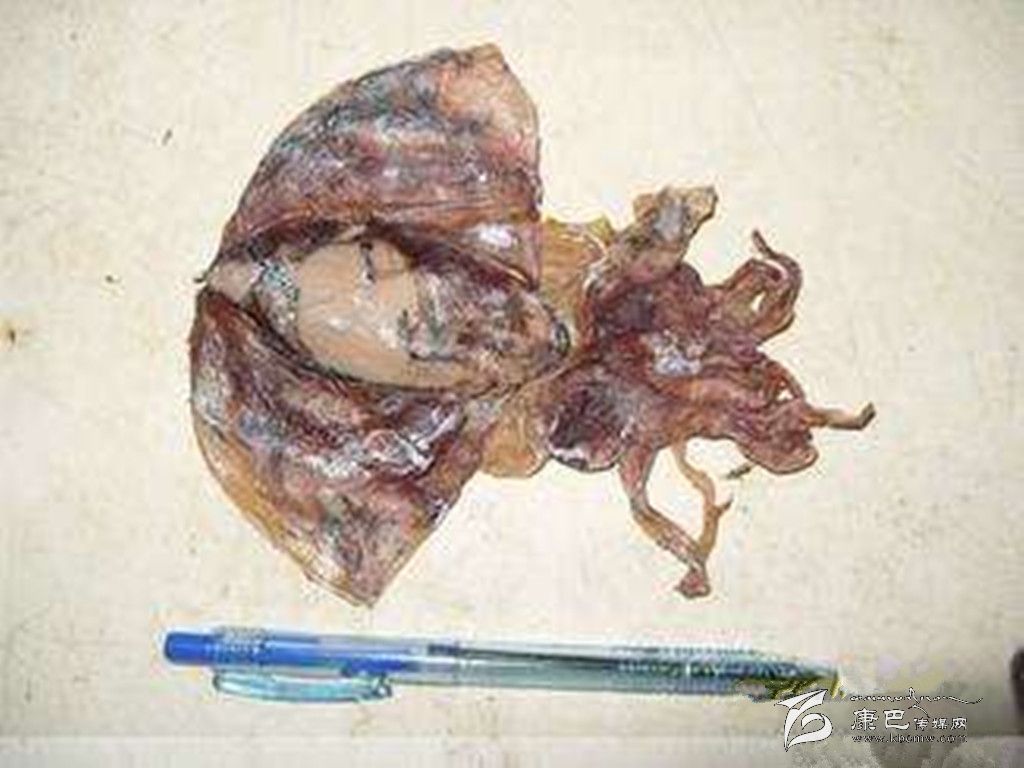 用手指用力按一下胴體的中部,如果有堅硬感,就是烏賊魚,如果較軟,就是魷魚。因為烏賊魚有一條像船型的硬烏賊骨,而魷魚僅有一條葉狀的透明薄膜橫亙于體內,所以手感不同。另外,魷魚一般都體形細長,末端呈長菱形,肉質鰭分列于嗣體的兩側,倒過來觀察時,很像一只“標槍頭”,而烏賊魚外形稍顯肩寬,與魷魚的其他特征也有區(qū)別。