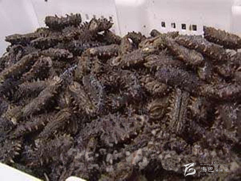 ●海參。體形完整端正、夠干、淡口、結實而有光澤,大小均勻、肚無沙的為上品;體形較完整、結實、色澤較暗者歡之。