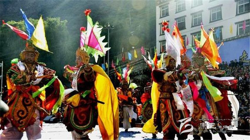 十七世紀(jì)時,丹巴巴底大坪村阿洛、益西降稱等喇嘛去西藏學(xué)經(jīng),求學(xué)期間,征行九世班禪同意在日喀則扎什倫布寺學(xué)習(xí)藏戲,學(xué)了《呷拉翁布》(另名《卓瓦桑姆》)和《甲扎共龔》(譯為《文成公主》)二劇的唱腔、鼓鈸奏法、表演技巧,帶回巴底黃金寺,挑選寺中30余名僧徒成立黃金寺藏戲團(tuán)。此后,每年都在規(guī)定時間演出。丹巴中路藏戲,是中路寺廟喇嘛去西藏學(xué)經(jīng)時帶回的。