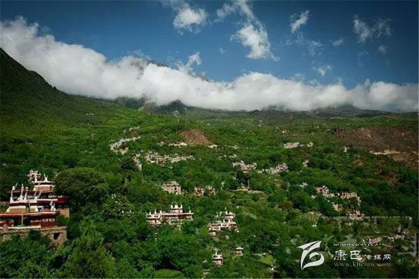 遠(yuǎn)遠(yuǎn)看去,充滿靈氣的山谷中,翡翠般的青草綠樹之中,是那沉甸甸的田地和隱在密林深處的寨房,伴著時有時無的潺潺溪流,一幅富有動感的絕妙山寨畫卷隨之展示在你的眼前。山寨依山面水,周圍綠樹掩映,藏寨從大金河谷層層疊疊向上攀沿,錯落有致的散布在山坡上,一直延伸到卡帕瑪群峰峰的腳下,非常的漂亮。
