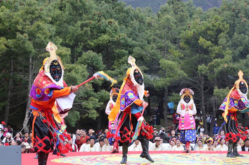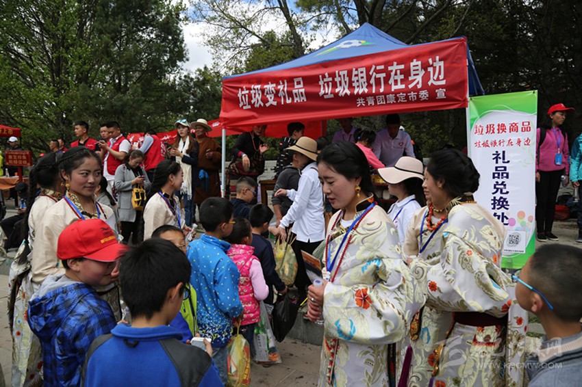 曬佛儀式之后是第三屆“梵音”音樂(lè)會(huì)。音樂(lè)會(huì)在由州歌舞團(tuán)演繹的面具舞《祈??刀ā分欣_(kāi)序幕,13個(gè)表演節(jié)目中,既有透人心靈的梵音演唱和二胡演奏,又有激蕩人心的說(shuō)唱表演和流行演唱,還有質(zhì)樸脫俗的原生態(tài)民歌演唱和群舞鍋莊,時(shí)尚和古樸、流行與傳統(tǒng)都在這里得到了集中展現(xiàn)。原生態(tài)歌曲《溜溜調(diào)》,原創(chuàng)歌曲《康定先生》《新編木雅鍋莊》等極具康定特色的節(jié)目更是將情歌故里的人之美、景之美、文化之美展現(xiàn)得淋漓盡致。將近90分鐘的表演高潮迭起、精彩紛呈,現(xiàn)場(chǎng)喝彩聲、歡呼聲此起彼伏,手機(jī)、單反、平板、航拍交相輝映,忙著錄視頻、拍照片、發(fā)微博、曬動(dòng)態(tài)的人更是比比皆是在。除了精彩的表演,現(xiàn)場(chǎng)身著華麗盛裝的康巴美女也是一道靚麗的風(fēng)景,引得無(wú)數(shù)中外游客爭(zhēng)相與之合影留戀。從四面八方趕來(lái)叫賣、推銷各種商品的店商和攤販也為此次活動(dòng)增添了不少生氣。此外,康定團(tuán)市委還特意在活動(dòng)現(xiàn)場(chǎng)開(kāi)展了“垃圾變禮品”活動(dòng),通過(guò)贈(zèng)送禮品鼓勵(lì)大家清理垃圾,此次活動(dòng)雖然人流巨大但場(chǎng)地衛(wèi)生異常良好。