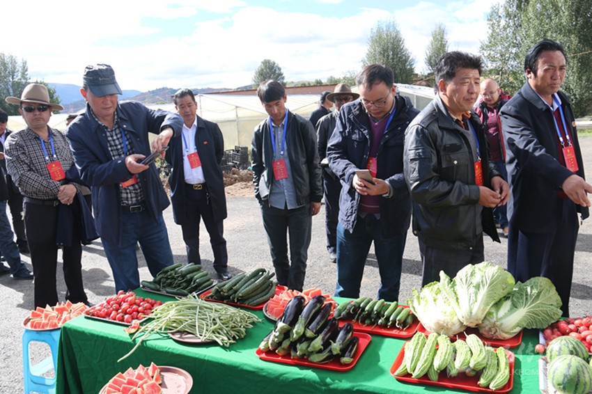 視察甲洼“飛地”農(nóng)業(yè)產(chǎn)業(yè)園區(qū)農(nóng)產(chǎn)品。