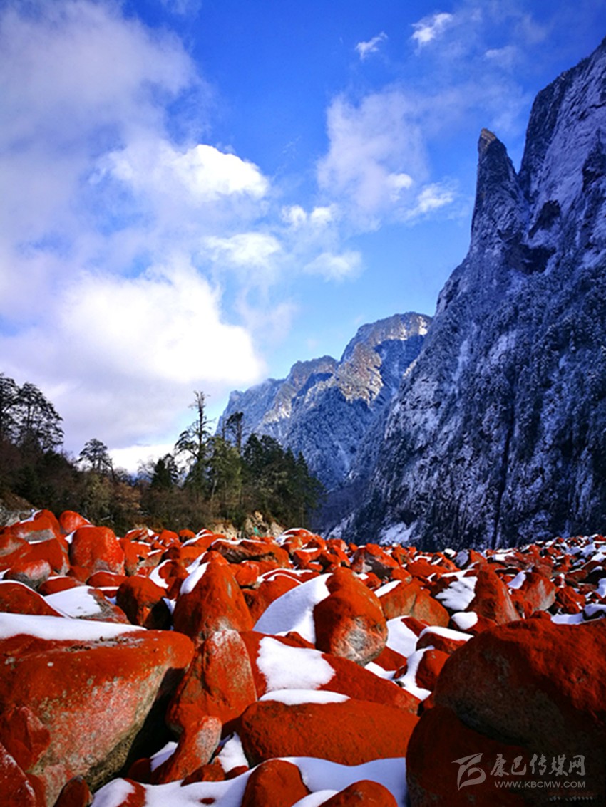 位于貢嘎山腳下綿延20多公里的紅石灘,更是與雪凇形成了強(qiáng)烈的視覺對(duì)比。燕子溝紅石歷經(jīng)冰川融水的沖擊,從遠(yuǎn)處望去,愈顯鮮艷和壯麗。據(jù)燕子溝風(fēng)景區(qū)工作人員介紹,紅石只能在特定的環(huán)境中生存,它對(duì)生存環(huán)境如海拔高度、溫度、濕度、空氣純凈度及日照條件等要求極為苛刻。燕子溝景區(qū)紅石灘自海拔2100米以上,一直到貢嘎山主峰腳下,綿延近20公里,好似一張紅地毯從天而降!就規(guī)模、密度以及顏色鮮艷度來(lái)說,幾乎無(wú)人能及,曾有專家稱燕子溝景區(qū)紅石灘為世界紅石公園。