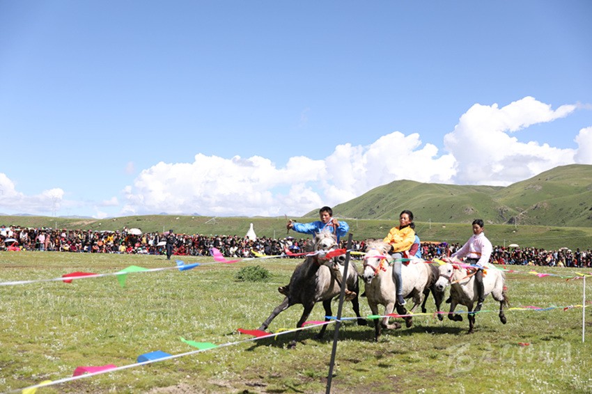 綠草茵茵如碧毯,蹄踏聲聲腔響耳畔。七月是草原最美的季節(jié),也是草原人最美的時刻。7月26日一早,初升的太陽照在廣袤無垠的草地,身著傳統(tǒng)盛裝的牧民聚集在一起,在一片歡騰中,蹄聲激越,狂飆突起,拉開了德格縣馬尼干戈鎮(zhèn)第三屆賽馬文化藝術節(jié)的序幕。