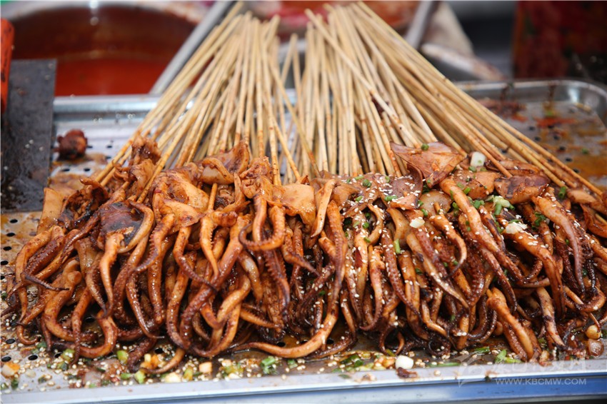 作為一個(gè)四川人,對(duì)于麻辣味的食物毫無抵抗力,在康定后街林立的商鋪中,記者一眼就相中了“深海魷魚花”這家店??粗褐t油的魷魚花靜靜地躺在紅椒和芹菜間,記者咽了咽口水,向老板買了一份兒?!罢媸羌兗兊拇ㄎ秲簺]錯(cuò)了,又麻又辣的?!庇浾邔?duì)老板說。老板回答到:“魷魚花最講究的就是刀法了,要切得好看。雖然在顧客看來都差不多樣子,但是我每次都要經(jīng)過細(xì)細(xì)斟酌再一刀一刀的切,爭(zhēng)取多弄幾種樣式,現(xiàn)在我的??蛡円矔?huì)細(xì)細(xì)地考究我切的魷魚花了。以前我只賣烤魷魚,只是在家里偶爾會(huì)給我兒子做魷魚花,后來看我兒子喜歡吃,才開始慢慢地賣魷魚花,沒想到還是很受歡迎。這次美食節(jié),我發(fā)現(xiàn)沒有人做魷魚花,所以我就帶著我兒子喜歡的魷魚花來參加這次美食節(jié)了。”老板笑著跟記者說。
