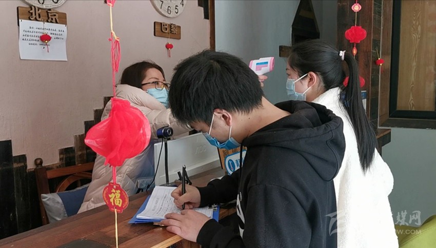 當日上午8時,景區(qū)游客中心迎來了開放后的第一批游客。來自成都市金牛區(qū)的周女士一行佩戴口罩,率先經(jīng)工作人員指引,有序地來到檢測服務(wù)點,逐一接受體溫測量、登記健康信息、辦理入園手續(xù)后,步行進入乘車區(qū)域,整個流程一氣呵成,身份證件、健康證明、體溫數(shù)值、電子門票,皆是一一對應(yīng),無接觸式服務(wù),快速通行入園。
