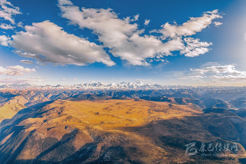 “這是一處極好的高山觀景平臺(tái),向東南眺望,貢嘎山似乎近在咫尺,直線距離約46公里,這是由西北方向觀賞貢嘎山的很好視角。視線所及處,還能欣賞到整個(gè)大雪山脈的雪嶺冰峰嵯峨逶迤。更奇特的是,冷古納托與周圍大面積的丘狀高原,呈現(xiàn)出一個(gè)近于水平的山原面,就像一個(gè)波濤起伏的海平面,而貢嘎山及其大雪山脈,就像突出于海面上的冰山?!?在川西拍攝過無數(shù)美景的樊覓韻,也為“冷谷納托”的雄壯奇麗而傾倒,“川西橫斷山區(qū)的崇山峻嶺里,為什么會(huì)出現(xiàn)這樣‘遺世獨(dú)立’的平闊山原呢?大自然的造化神秀讓人嘆服?!?/span>
