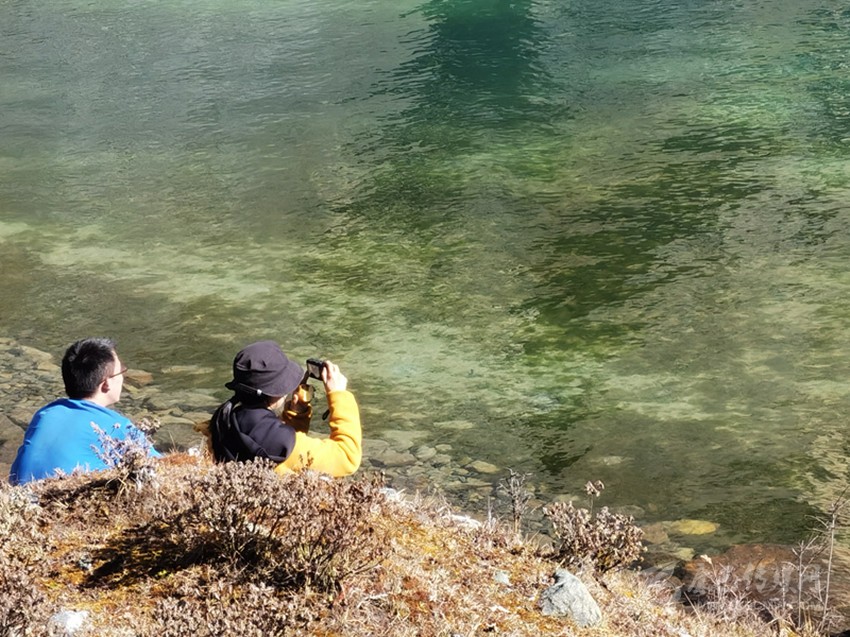 白海子的美較其他海子來說,就在于湖水的顏色,貢嘎青旅的顧問狼哥介紹說,現(xiàn)在大家喜歡叫白海子為翡翠海,就是因為它的顏色,如一塊藍綠的翡翠鑲嵌在高山的懷抱中,隨著光線的不同顏色變幻莫測。在康定的眾多海子中,這樣的顏色很少見,也更吸引人。