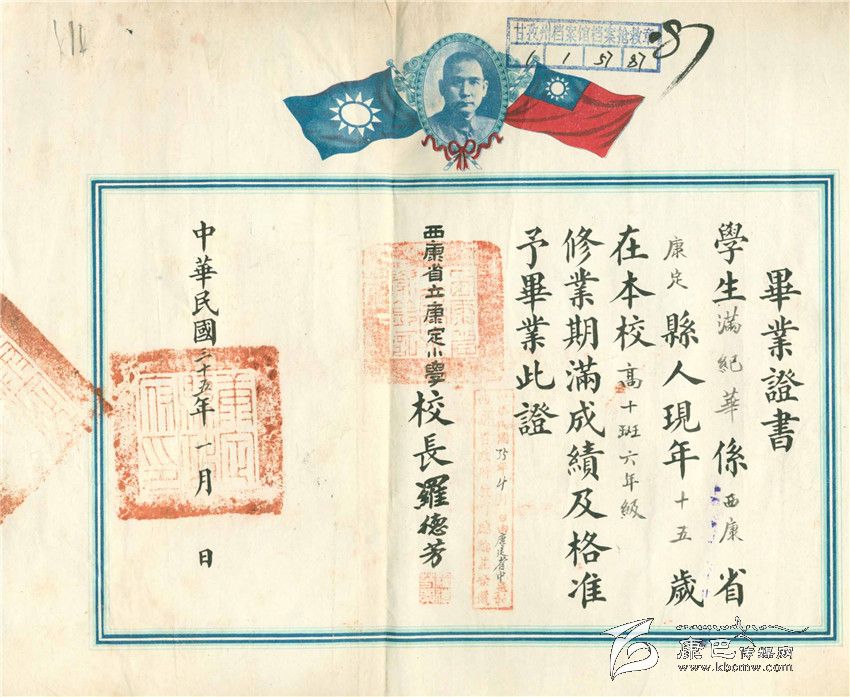 這里的幾份畢業(yè)證書,有由“國(guó)立康定師范學(xué)校”所頒發(fā) 畢業(yè)證,也有由小學(xué)校頒發(fā)的小學(xué)畢業(yè)證。通過(guò)這些畢業(yè)證,讓今天的人們也能感受到在那個(gè)時(shí)期,西康地方的學(xué)校教育十分正規(guī),也就是那個(gè)時(shí)期畢業(yè)的許多學(xué)生,成為了新中國(guó)成立后,建設(shè)社會(huì)主義新藏區(qū)的一支重要力量。