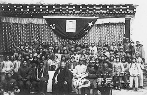 10月15日上午來了通知,下午1:30舉行開學(xué)典禮,在會上自治區(qū)領(lǐng)導(dǎo)當(dāng)場宣布:實(shí)習(xí)隊(duì)改為“藏族自治區(qū)民族學(xué)校語文班”,再從當(dāng)?shù)馗饔嘘P(guān)部門抽調(diào)30名干部和實(shí)習(xí)隊(duì)一起下去學(xué)習(xí),學(xué)習(xí)地點(diǎn)是木雅地區(qū)貢嘎山的貢嘎寺。校長是自治區(qū)副主席阿旺加錯(cuò)同志,教授是貢嘎活佛,還將從德格等地再請幾位老師,從干部中調(diào)來一位正縣長馬崇正當(dāng)班主任,協(xié)助楊炎侯抓思想工作,并統(tǒng)管后勤工作。同時(shí),還配備了專職的醫(yī)生、護(hù)士、炊事員各一名。最后自治區(qū)的苗副政委語重心長地對大家說:“下去后,肯定有許多困難!怕困難就不是毛主席的好學(xué)生,誰向困難低頭就意味著背叛革命!”當(dāng)天晚上還開了聯(lián)歡會,除了表演一般歌舞之外,我們用集體朗誦詩的形式回答了首長們的殷切期望。詩中說:“我們要創(chuàng)造學(xué)習(xí)上的新紀(jì)錄,保證學(xué)習(xí)計(jì)劃百分之百地完成。”