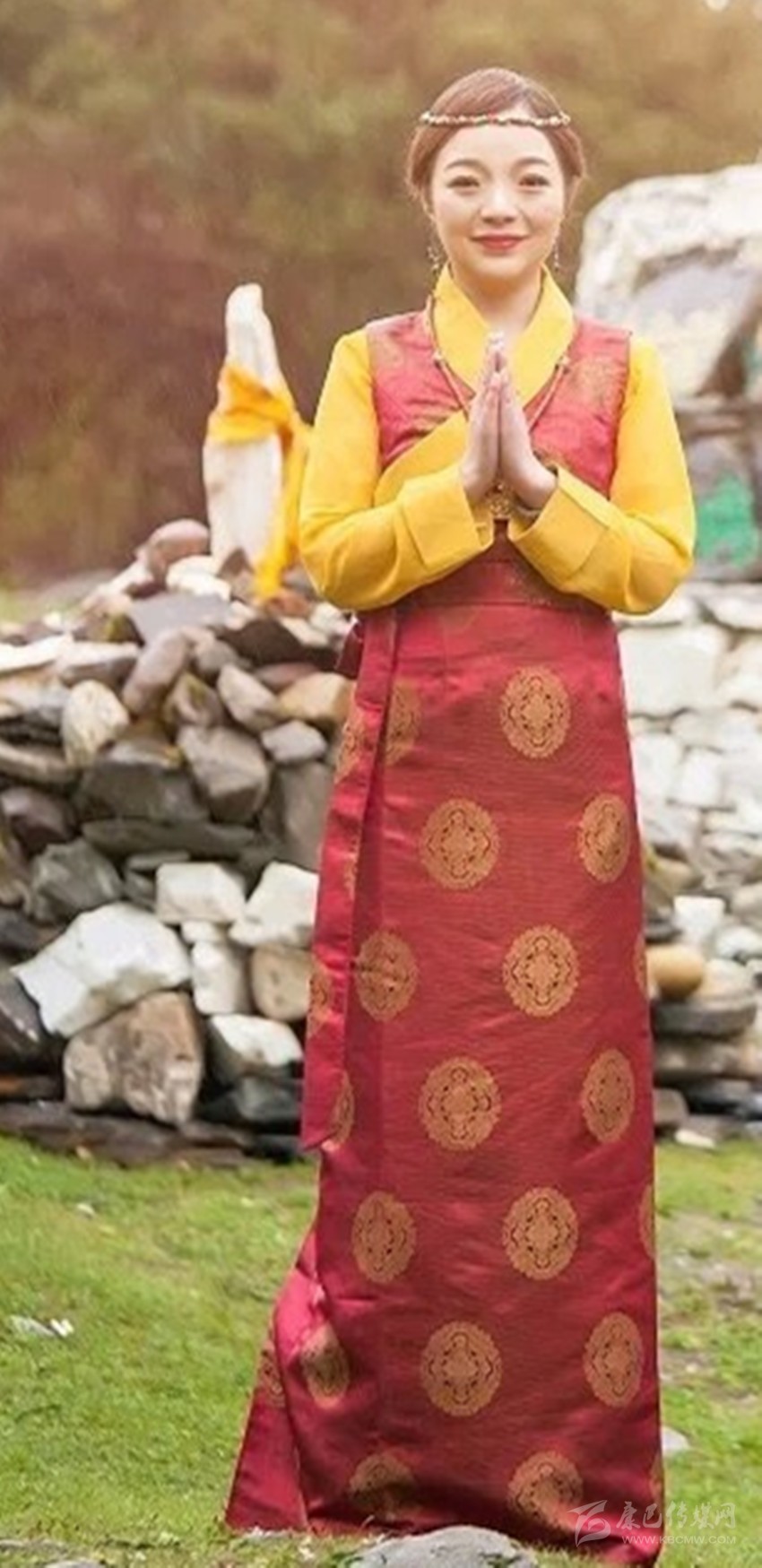無論是經(jīng)典的黑色立領(lǐng)上衣還是金邊裝飾的翻領(lǐng)上衣,都十分時(shí)髦美觀,配上做工精細(xì),由毛呢、氆氌等材料制成的充滿民族特色花紋的下衣,加上華麗珠寶鑲嵌的腰帶是對(duì)傳統(tǒng)藏裝的傳承與發(fā)展。