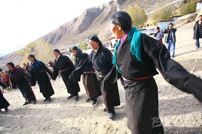 弦子又名為“協(xié)”,在甘孜縣境內(nèi)有孔薩協(xié)欽、仲薩協(xié)、格達(dá)協(xié)、郎扎協(xié)等,其中白利寺五世格達(dá)活佛創(chuàng)建于二十世紀(jì)三、四十年代的格達(dá)弦子尤為著名,跳此舞無時(shí)間規(guī)定。起初用此歌祭祀亡魂、超度靈魂、免荒災(zāi)。以后逐漸豐富其內(nèi)容而流傳于民間。表演時(shí)無伴奏樂器,起舞時(shí),男女兩隊(duì)輪歌共舞,圍成圓圈,相對(duì)而立,男女舞者統(tǒng)一著樸素藏裝,男舞者抬頭,頭戴金氈帽, 身著“氆氌”衣,但不配戴腰刀;女舞者低頭,扎小辮子,身著“氆氌”衣,腳穿藏鞋,沿著弧線,先慢后快,邊歌邊舞,舞蹈的腳步動(dòng)作矯健,帶有“夏卓”的風(fēng)韻。格達(dá)活佛的詩(shī)歌,具有藏族文學(xué)的新內(nèi)容和新思想,每當(dāng)節(jié)日人們就在優(yōu)美的旋律中盡情起舞,格達(dá)弦子的詞、曲均由格達(dá)活佛創(chuàng)作。