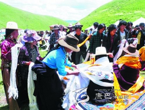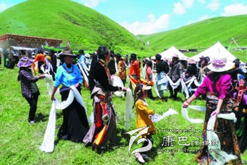 剛走進(jìn)宗塔壩子,記者便意識到一個(gè)人想象力的貧乏,現(xiàn)實(shí)中的宗塔草原以一種與眾不同的美把一個(gè)人的目光悄悄托起。四周長滿牧草的小山像溫順的花瓣,靜靜包裹著那一片平坦的壩子,如果一個(gè)人眺望的目光足夠高足夠遠(yuǎn),山和壩子的造型會讓人聯(lián)想到一朵蓮花,而壩子里小點(diǎn)般的帳篷就像一顆顆蓮子,世世代代的宗塔人便在這蓮花般盛開的天地里穿行、繁衍生息。
