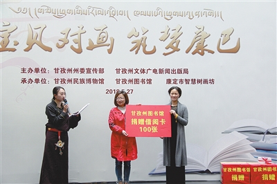 在“推動(dòng)全民閱讀,建設(shè)書香甘孜”贈(zèng)書環(huán)節(jié),州圖書館向康定市智慧樹畫坊贈(zèng)送了圖書和借閱卡?!百?zèng)書活動(dòng)不僅讓孩子們有更多的課外書看,培養(yǎng)他們讀好書、好讀書的習(xí)慣,還讓他們有機(jī)會(huì)學(xué)習(xí)‘贈(zèng)人玫瑰,手留余香’的美德,這是給孩子們最有意義的‘六一’禮物?!币晃粎⑴c活動(dòng)的家長(zhǎng)由衷贊嘆。