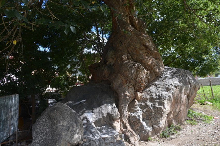 如今古桑抱石守衛(wèi)著巴塘這片熱土近千年,對研究巴塘的人文和氣候變化有極其重要的價值,保護好它理所應(yīng)當(dāng),擔(dān)心的是巨石旁長起兩棵皂莢樹,已比碗口還粗,大有后來居上之勢,若不未雨綢繆,必勢大難除。