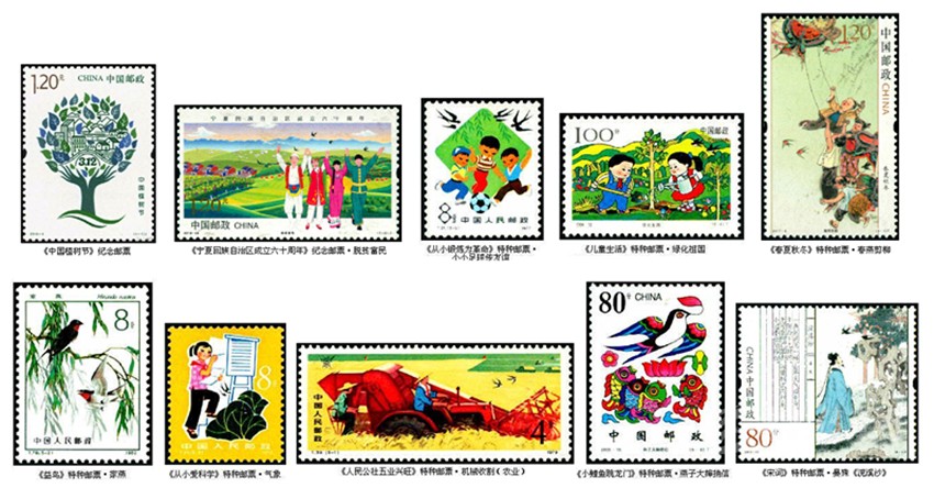2019年3月12日,中國郵政發(fā)行《中國植樹節(jié)》紀念郵票,圖案主體是意為雙手托起的綠色家園的一株枝繁葉茂的參天大樹,樹干枝頭上方層層綠葉中設計點綴了象征城鎮(zhèn)、鄉(xiāng)村、河流、山川、藍天白云等符號化圖形,其中就有兩只飛燕。寓意通過全民植樹造林活動,改善生態(tài)和生活環(huán)境,共同創(chuàng)造綠水青山的美麗中國。郵票中出現(xiàn)燕子象征大自然的生態(tài)美還有一枚即2019年9月19日發(fā)行的《寧夏回族自治區(qū)成立六十周年》紀念郵票,其中第二枚“脫貧富民”,圖案展現(xiàn)了寧夏大地的青山綠水,一派生機盎然的景象,在歡呼的人群上空就飛翔幾只燕子。