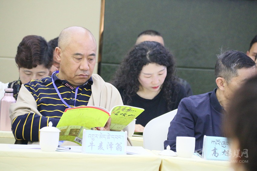 會議室正中的電子屏上,“貢嘎山期刊交流暨2019年藏漢文作家培訓會”白色字體赫然入目。室內(nèi)最靠后的桌上,《貢嘎山》200期紀念???、《貢嘎山》第199期等藏漢文讀物有序擺放,吸引了不少“粉絲”當場品讀。