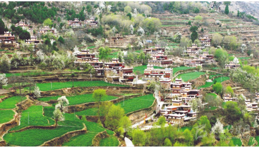 甲居,藏語是“百戶人家”的意思。實(shí)際上甲居藏寨分為一村、二村、三村共150余戶人家,700多人口,甲居藏寨所在地形如一個(gè)面積為5平方公里的大盆,大盆斜倚卡帕瑪群山,一棟棟外形別致、色彩鮮艷的典型嘉絨藏式民居錯(cuò)落有致地從山腳一直排到半山。甲居人一代一代修造的梯田點(diǎn)綴民居之間,顯示出別具一格的田園韻味。茂密的柏樹掩映著民居,這些別致的民居不象故宮規(guī)模對稱,也不象蘇州園林隨興布局。碉樓式的民居雖無嚴(yán)格的統(tǒng)一規(guī)劃,但卻似乎不是隨意而建,每棟民居都有它獨(dú)特?fù)屟鄣娘L(fēng)格。正是這些別具一格的座座碉樓民居,構(gòu)成甲居藏寨的精妙絕倫。民居外所立的經(jīng)幡以及房頂隨風(fēng)飄動(dòng)的瑪尼旗,又為恬靜如詩的鄉(xiāng)土民居增添了無限神秘的色彩。祥云籠罩山頂,溪水潺潺環(huán)流,山腳滾滾河流,山水渾映,天水合一,筆者一行不由驚嘆,甲居藏寨 ,名符其實(shí)的人間仙境,世外桃源!先前道路險(xiǎn)峻留在心底的驚懼早已一掃而光,一行人激動(dòng)著迫不及待地?fù)渖碛诿啦粍偈盏南删持小?/p>