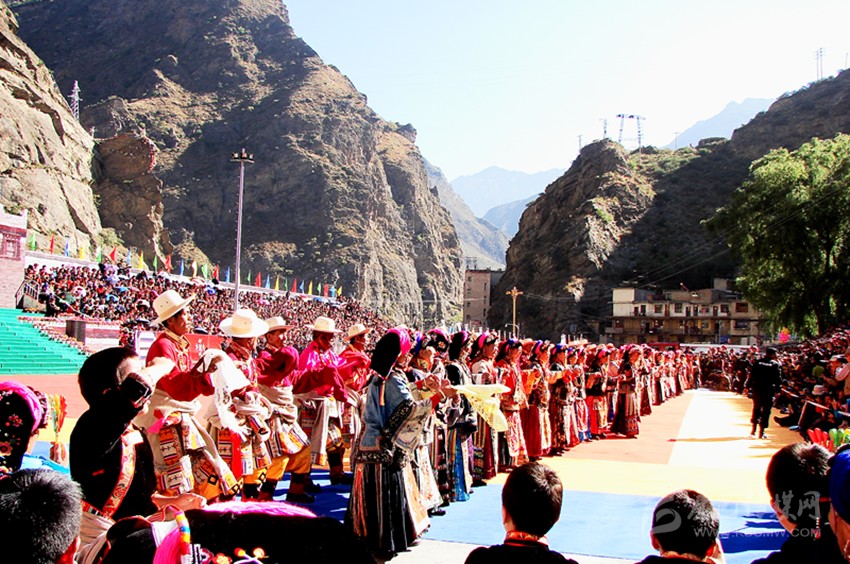 行不多時(shí),一座美麗的村寨就出現(xiàn)在面前。眼前,一幢幢白色的藏房就散落在這如如世外桃源般的山坳里,它就是有著歌舞之鄉(xiāng)美譽(yù)的宅龍村寨。山寨中央,一條小徑將整個(gè)村寨一分為二,小徑以上的村寨為上宅龍,小徑以下的為下宅龍。因?yàn)檫@里曾是守備千總的衙門駐地,因此,與周邊使用嘉絨藏語(yǔ)的村寨比較,這里的人們習(xí)慣使用嘉絨藏語(yǔ)中的敬語(yǔ)交流,其語(yǔ)調(diào)柔和,語(yǔ)速較緩。這里的鍋莊舞獨(dú)樹一幟,服飾更是一絕。