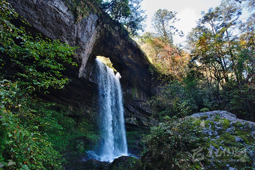 我的腳步?jīng)]有停留,再轉(zhuǎn)過(guò)一個(gè)彎道,瀑布就不見(jiàn)了,像我樸素的心歷經(jīng)了一場(chǎng)美妙的幻境一樣忽然。我聽到前方有更大的水聲跌落,仰頭就見(jiàn)一道更高的瀑布從高山峭壁之間,凌空垂下,水花飛濺的聲音響徹山谷。腳下的石徑像有生命似的蜿蜒穿入了瀑布之中,我登上去,站在其間看著瀑布從眼前落下,大口呼吸,心胸豁然開朗,這是瀑布給我的啟迪啊。