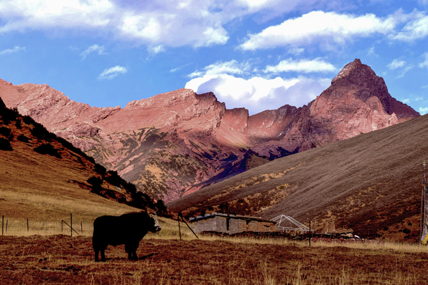 我這次,正好就走近了紅色的山,走進了青藏東南緣橫斷山北部、康巴高原新龍的紅山懷抱,它藏名叫“絨多巴日”,當(dāng)?shù)厝硕己喎Q它紅山,也稱它為銅色吉祥山或蓮花生銅色光明宮。