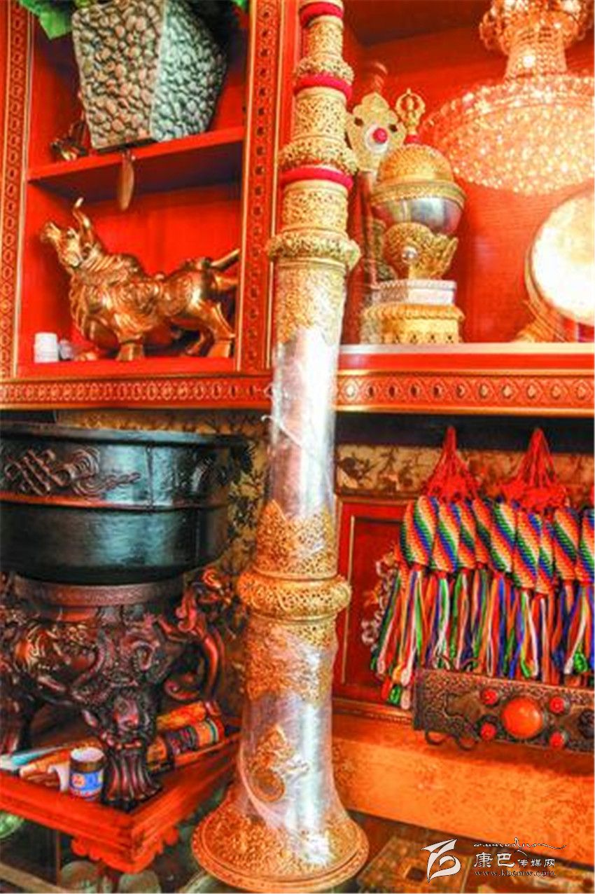 在河坡一代,像根秋丹貞、伍金這樣的手工藝人還有很多很多。其麥一家和根秋丹貞家一樣,也是主要制作佛器,在他的記憶里,爺爺、父親、叔叔、伯伯都是制作藝人,而自己家到底有多長的制作歷史,連他都說不清楚。51歲的扎西次仁這幾天有點(diǎn)忙,聽說噶陀寺最近要舉行法會(huì),而以法器制作為主的他,早早的就在噶陀寺的臨時(shí)商點(diǎn)支起了“小賣部”,在這里叫賣自己家的精品法器,嘎烏、計(jì)數(shù)器、法號等等讓記者看得應(yīng)接不暇。