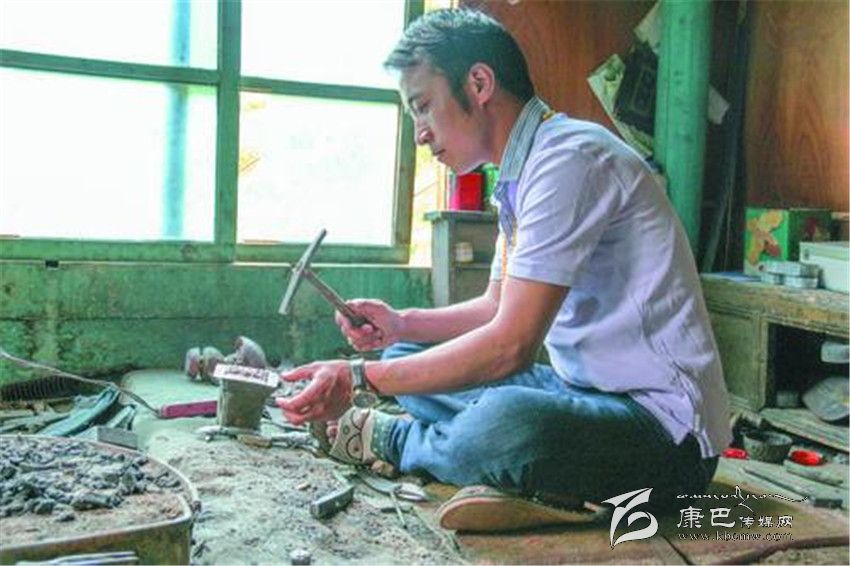 從金沙江支流贈(zèng)曲河溯流而上,不到半個(gè)小時(shí)便可到白玉縣河坡鄉(xiāng)。就是這個(gè)不起眼的“小地方”,從1300多年前便開始鑄造兵器,曾被譽(yù)為“格薩爾王的兵器庫”。2008年,“藏族金屬鍛造技藝”被列入國家級非物質(zhì)文化遺產(chǎn)名錄,其中便包括以河坡為代表的“藏刀鍛制技藝”。 在記者的想象中,河坡鄉(xiāng)應(yīng)該是一派作坊連片、熱火朝天、叮叮當(dāng)當(dāng)?shù)氖止ぶ圃靾鼍?。然而,?dāng)記者來到這里,卻沒有看到這樣的景象。原來,河坡鄉(xiāng)的手工藝生產(chǎn)模式以家庭作坊為主,每家每戶的“工作室”常常設(shè)在自家房屋二樓一角。在白玉河坡鄉(xiāng)每個(gè)家庭作坊,通常都有自己擅長的專業(yè)產(chǎn)品和特色。例如,手工藝人根秋丹貞擅長制作佛具, 伍金則擅長打制藏刀。其他如村多、麥達(dá)、麥學(xué)等各個(gè)村寨,還分散著諸多以生產(chǎn)馬具、飾品、日常生活用品等為主的家庭作坊。