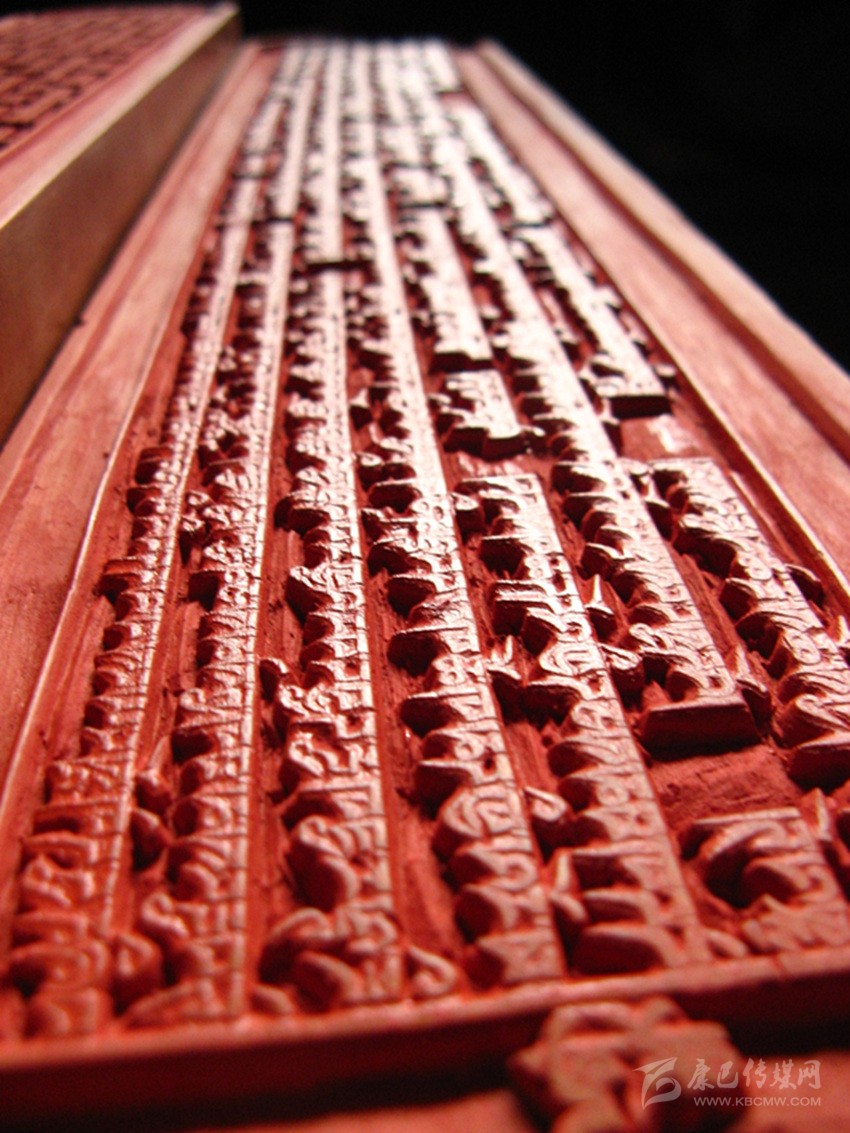 公元1730年2月3日,正式在倫珠頂開始進(jìn)行校對(duì)和雕刻工作。為了提高印版的質(zhì)量,土司規(guī)定實(shí)行三級(jí)審校制度,即書法家們負(fù)責(zé)對(duì)寫好的版文進(jìn)行兩校,以便及時(shí)修改錯(cuò)漏。然后經(jīng)編審師們復(fù)審和終審后,方可交刻工雕刻。刻完后,編審師們?cè)谇鍢由线€要進(jìn)行三校。版面改動(dòng)較多的進(jìn)行重刻,改動(dòng)較少的進(jìn)行補(bǔ)刻。規(guī)定的校次不準(zhǔn)任意減少或改動(dòng)。雕刻工作由噶瑪班珠和次白總負(fù)責(zé)。經(jīng)過60多名書寫員、10名編審師、400余名刻工以及100多名雜工的艱苦勞動(dòng),浩繁的《甘珠爾》刻版工程于在公元1734年完成。印版所用經(jīng)費(fèi),折成茶塊共計(jì)7622包(每包約20公斤)。