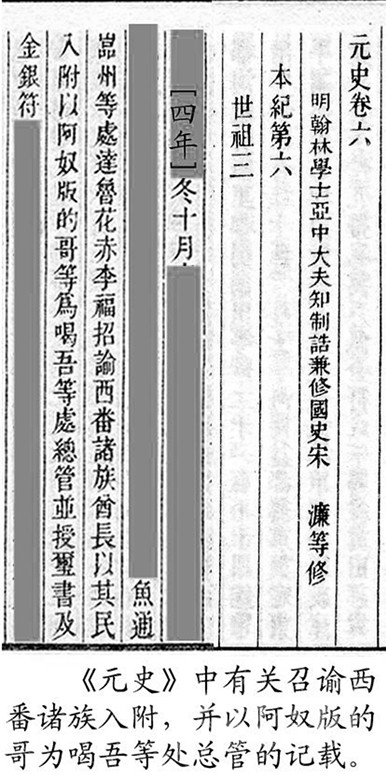 今屬康定縣的木雅,又分為上木雅和下木雅。下木雅的色烏絨地方,是木雅王曾住過的地方之一。民間又稱住在這里的王為“西吳甲布”(即“西吳王”),進而又附會出個“西吳國”來。從木雅貢嘎西邊那條叫色烏絨的山溝往南到打箭爐,正如傳說的那樣,早年一般要走三天?!对贰酚小昂任帷钡挠涊d,“喝吾”“色烏”都是藏語的音譯,藏語“絨”為山溝之意,指的就是這個色烏絨。元世祖忽必烈征滇,沿大渡河、金沙江而進,得到沿途部落首領的大力支持。長河(大渡河)西的“西吳王”自然也不例外。所以在至元四年(公元1267年)“冬十月壬戌,魚通巖州等到處達魯花赤李福,招諭西番諸族酋長以其民入附,以阿奴版的哥等為喝吾等處總管,并授璽書及金銀符?!钡玫缴w有皇帝大印(玉璽)文書和金銀符,朝廷正式任命為“喝吾”總管的酋長(木雅王)阿奴版的哥,之后從色烏絨遷到打煎爐,不僅成為朝廷認可的“長河西土官”,還作了“四川分省右丞”。我們是否可以判定,“木雅王”遷爐的時間應在至元四年(公元1267年)之后?1267年距今740多年,以此推算,如前文所說:今天西爐(康定城)的歷史,大約為700年!再者,若從宋代的“卡拉國”算起,說“明正”歷四十二代,不能說沒有一點來頭。
