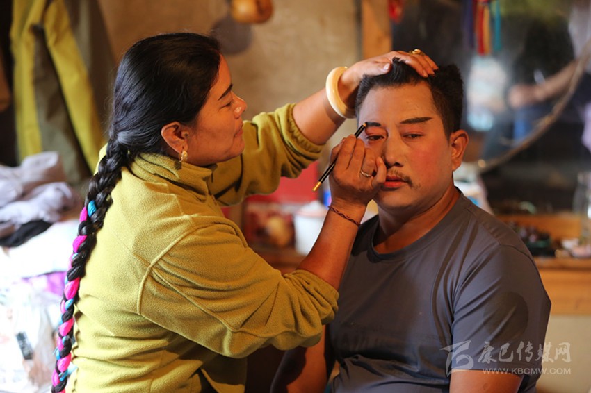 從此,藏戲?qū)λ麃碚f,成了修身養(yǎng)性的一種方式。扮演小丑,在舞臺中間插科打諢,引來觀眾笑聲不斷,他感到欣慰。演正角,在唱腔里融入自己對角色的理解和感情,覺得內(nèi)心充實。對自己的父母和老丈母,他沒有多的言語,只是切切實實地去盡孝心。藏戲里男女主角對愛情的忠貞不渝也感染了西繞,妻子去世后,33歲的他對佛教信仰更加虔誠,立誓不再續(xù)弦娶妻。他體悟出:唐東吉布為募善款修橋而創(chuàng)立藏戲,這是大愛。藏戲不比弦子,弦子是生產(chǎn)生活中的大眾化娛樂,屬于生活與情緒的直觀體現(xiàn);藏戲則是精神上的“信望愛”,宗教的神與人具像化溝通,敬神、渡人、祈愿,因此藏戲是神圣的?;谶@種思考和領(lǐng)悟,今年的“雅索節(jié)”,正值老丈母病逝沒幾天,本來是要絕對禁止歌舞的,但居拉活佛圓寂前的話猶在耳畔,他還是去跳了。他相信,真正懂藏戲的人會理解。