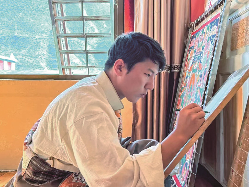 難以想象,眼前這名陽光帥氣的95后藏族大男孩已是從事唐卡繪畫18年的“老畫師”。