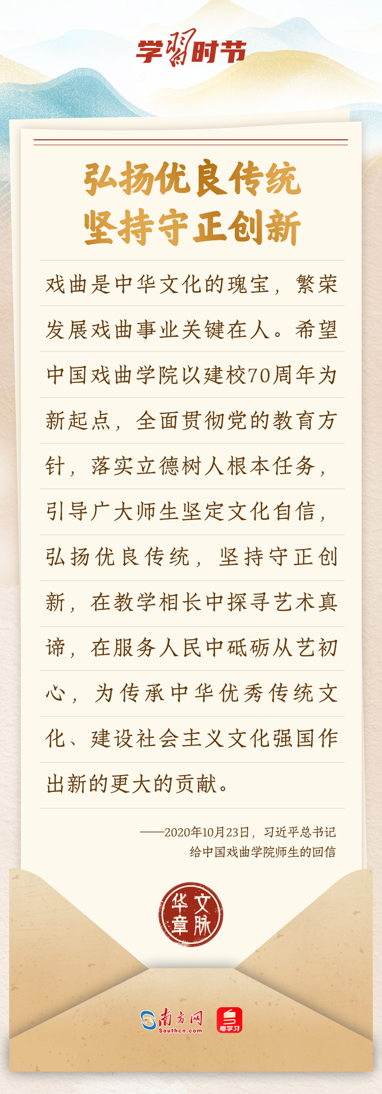 “中華民族在幾千年歷史中創(chuàng)造和延續(xù)的中華優(yōu)秀傳統(tǒng)文化,是中華民族的根和魂?!绷?xí)近平總書記多次通過發(fā)賀信、寫回信等方式,表達(dá)著對弘揚(yáng)中華優(yōu)秀傳統(tǒng)文化的殷切希望,飽含深情、字字暖心、催人奮進(jìn)。讓我們一起“讀”信。