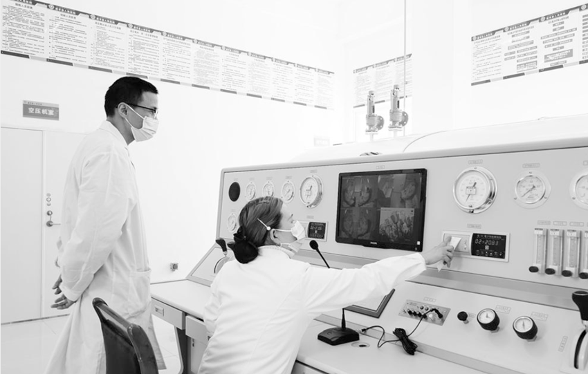 占地180余平方米的高壓氧治療中心,可容納6名患者同時(shí)治療。高壓艙內(nèi),患者可以自在地坐著“吸氧”,還可以聽(tīng)聽(tīng)音樂(lè)、聊聊天。艙內(nèi)配備空調(diào)、監(jiān)控及對(duì)講裝置,醫(yī)護(hù)人員在安全操控設(shè)備的同時(shí)全程密切關(guān)注艙內(nèi)情況,以防意外情況的發(fā)生。